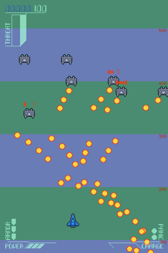 Dimensional shift is your ship's unique ability; holding the button generates a field of warped space around the ship after a brief delay. Bullets caught in this space are redirected up towards the enemy and can damage enemy craft. Take care though, as shifted bullets can still damage your ship!